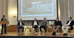 Nach kurzer Pause diskutieren im Fachpodium: Roy Kühnert/ Logistikinitiative Schleswig-Holstein, Wolfgang Raike/ Tourismusverband Hamburg e.V., Jörg Penner/ Architekt und Stadtplaner sowie Alexander Montana/ VCD.