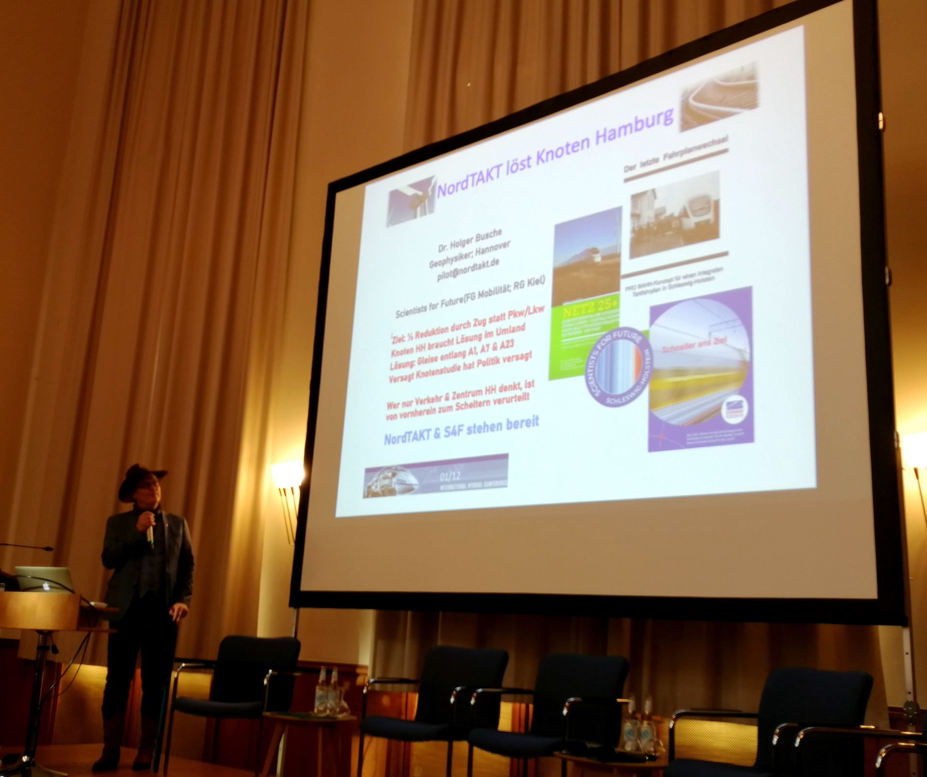 Vier Fachverbände stellen in kurzen Impulsbeiträgen ihre Ideen vor: Dr. Holger Busche/S4F, Michael Jung/ Prellbock Altona e.V., Mathias Bölckow/ Pro Bahn, Jonas Spanier/ VCD (vorgetragen d. Iris Neitmann).