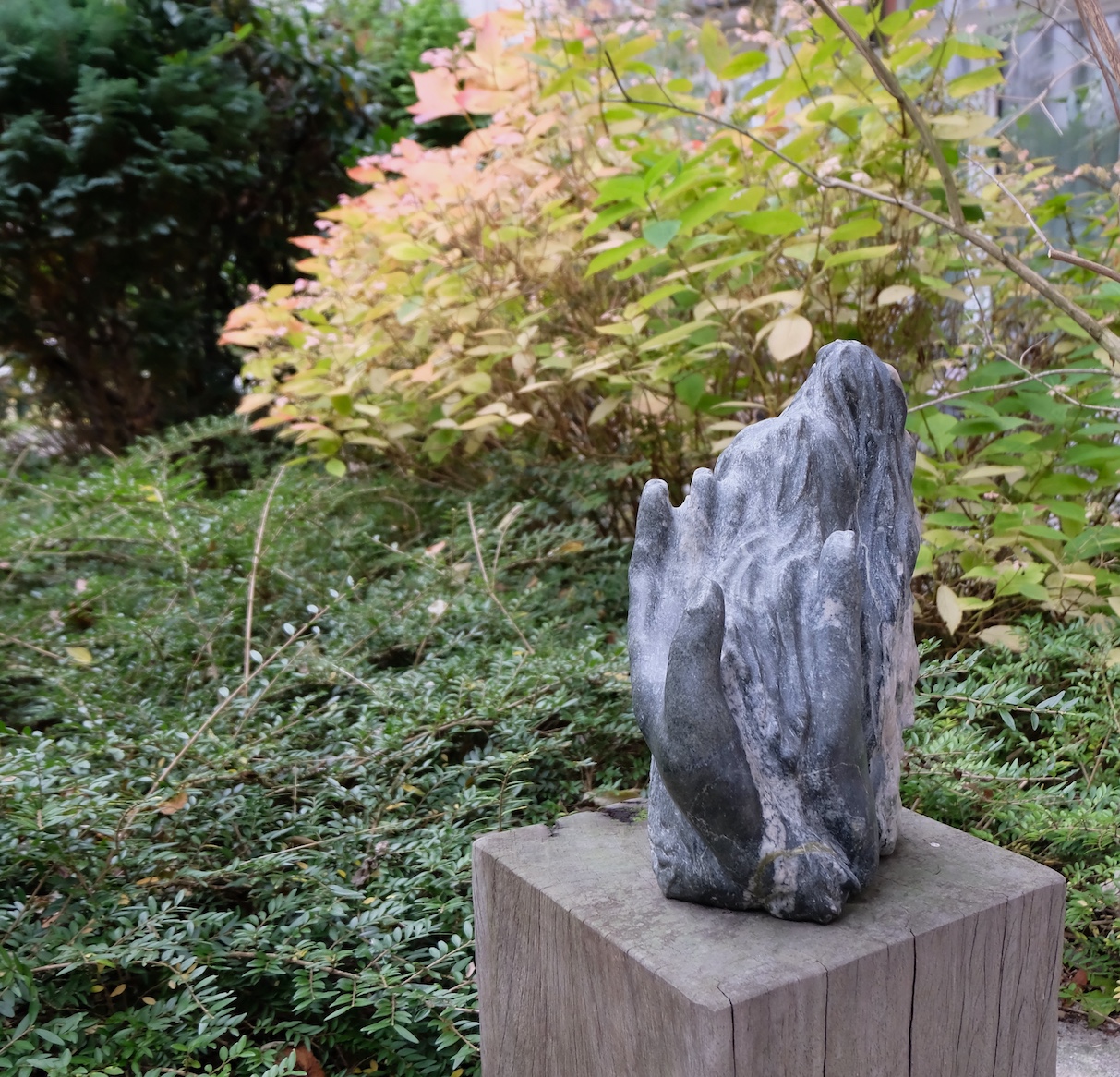 neben Skulpturen unterschiedlicher Künstler.