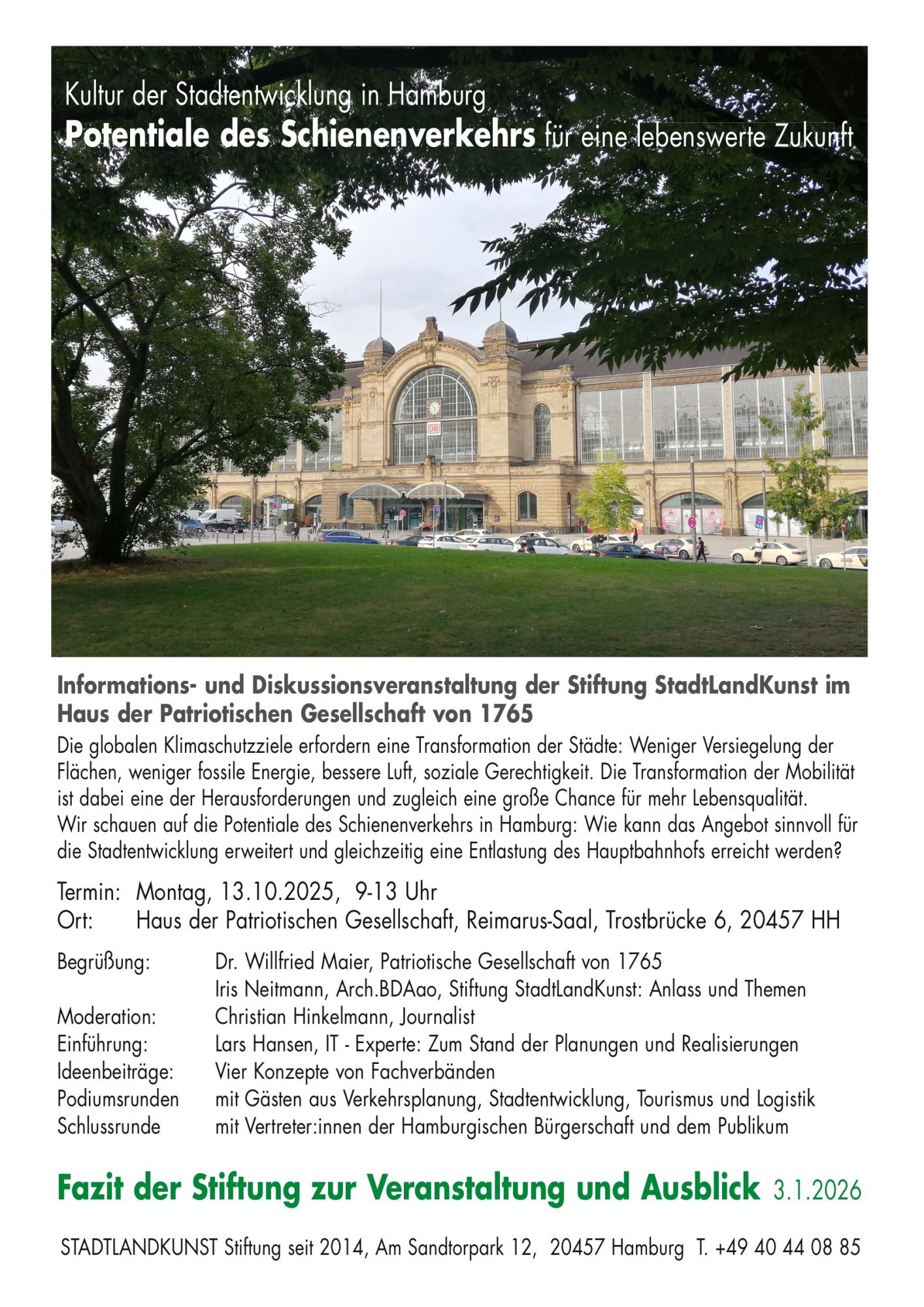 Als Gastgeberin der Informations- und Diskussionsveranstaltung vom 13. Oktober 2025 hat Stiftung StadtLandKunst eine Zusammenfassung der Beiträge erstellt und ein persönliches Fazit. Das Fazit enthält von der Stiftung erarbeitete Übersichtspläne zur Veranschaulichung.